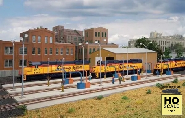 A great detail for contemporary operations, the versatile Modern Diesel Fueling Facility has everything you need to model today's fueling pads in HO. Check out the features of this detailed Cornerstone kit that includes: All-new model for contemporary layouts Great addition to yards and engine terminal scenes Typical of facilities used by large and small North American railroads Builds a typical 3-track fueling pad - easily adapted for longer 2-track model Includes six each: Large and small walkways Spill containment pans Fueling cranes Cooling water booms and cabinets Lube oil booms and cabinets Nonworking overhead lights Molded in two colors of plastic Measures: 10 x 20-5/8 x 4-3/8" (over lights) 25.4 x 52.3 x 11.1 cm; track spacing 3-3/16" 8cm UPC: 616374181728