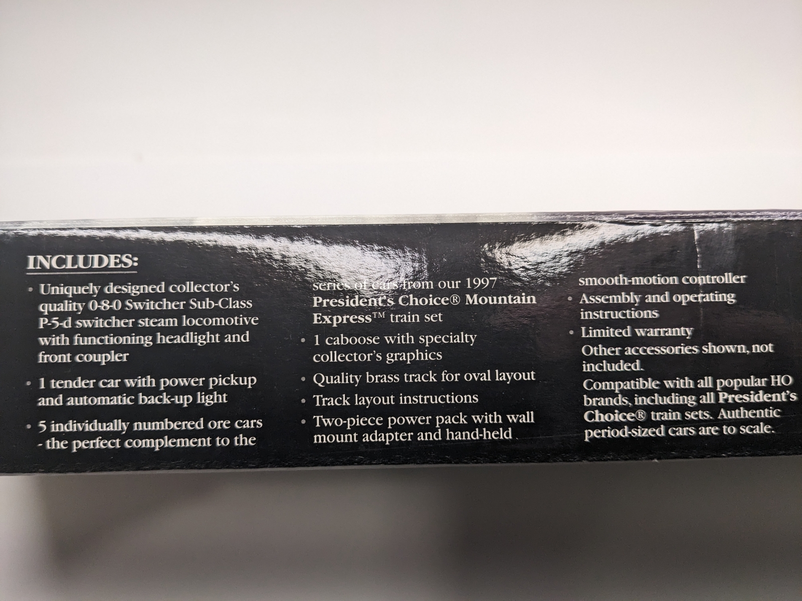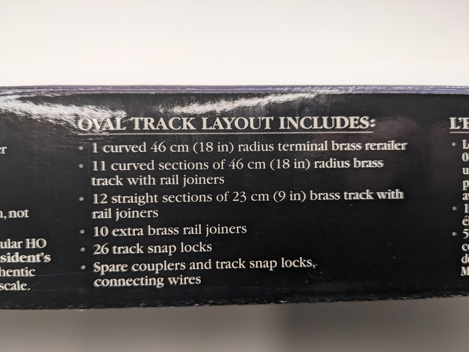 Note that this has the older horn-hook style couplers, and brass track. Still a decent starter set to see how you like HO scale trains, put around a Christmas tree, etc. Consignment. UPC: 060383703431