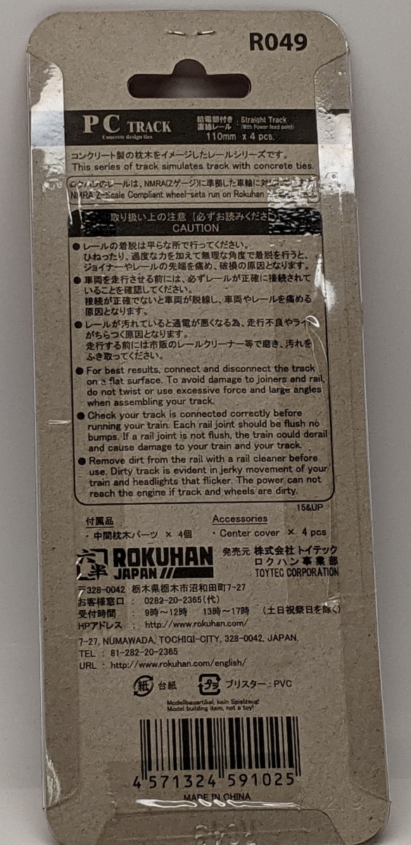 Rokuhan R049 Z PC (Concrete Ties) Straight Track 110mm (4pcs) Manufacturer: Rokuhan (Made in China)