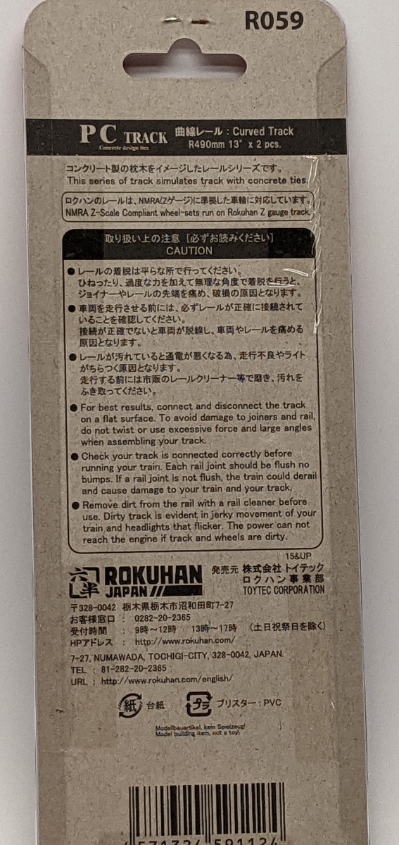 Rokuhan R059 Z PC (Concrete Ties) Curved Track R490mm 13degree (2pcs) Manufacturer: Rokuhan (Made in China)