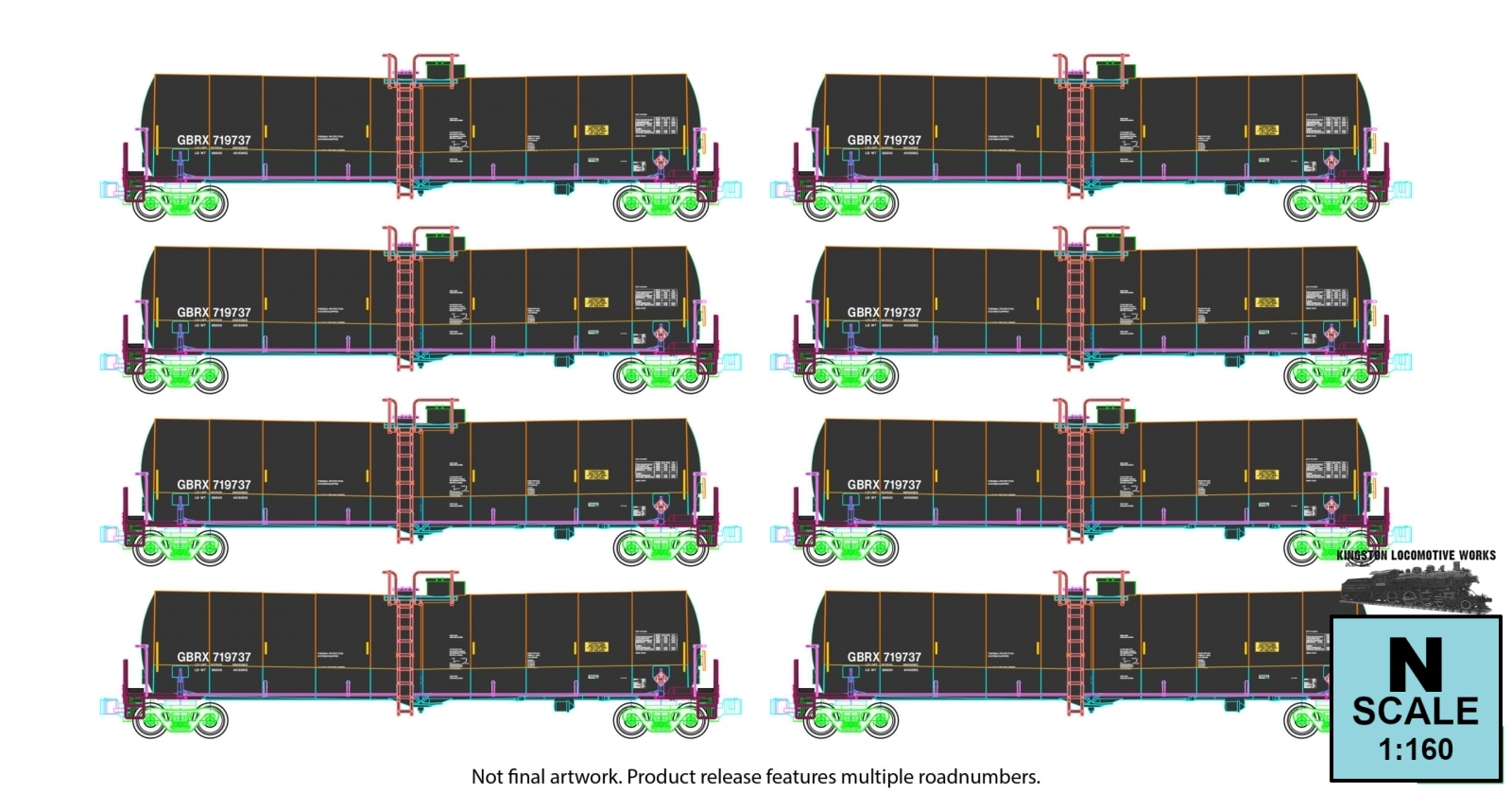 Kato 106-4802 N Greenbrier 30K Tank Cars, GBRX 8-Car Set B Manufacturer: Kato (Made in Japan)