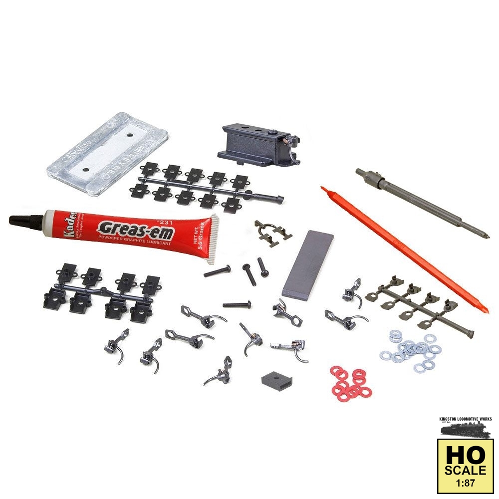 This package of Kadee® products is designed to assist the beginning model railroader in learning the basic modeling skills of proper coupler mounting and use of the Kadee® Magne-Matic® coupler system. The following items are a basic selection of assorted couplers and related products that should be enough for the beginner to acquire the knowledge needed for proper coupler selection and mounting. Contains: HO-Scale Conversion list, Coupler Primer, #1035 Instructions, Product Instructions & full size packages of products listed below. Couplers - Metal NO.5® Medium Centerset - Metal - 2 Pair 142 Whisker® Medium Overset - Metal - 2 Pair 143 Whisker® Short Centerset - Metal - 2 Pair 146 Whisker® Long Centerset - Metal - 2 Pair 147 Whisker® Medium Underset - Metal - 2 Pair 148 Whisker® Medium Centerset - Metal - 2 Pair 158 Whisker® "Scale" Medium Centerset - Metal - 2 Pair Gearboxes and Adaptors 212 Talgo Truck Adaptors - 2dz. 252 Whisker® Coupler - Small Snap-Together Gearboxes & lids (30-Series Equivalent) - 10 Pair 262 Whisker® Coupler - Narrow Snap-Together Gearboxes & Lids - 10 Pair Screws, Washers & Shims 208 .015" Red Fiber Washer - 4dz. 209 .010" Gray Fiber Washer - 4dz. 211 .010" & .015" Shims - 20 Each 256 Plastic 2-56 x 1/2" Screws - 1dz. Uncouplers 321 Code 100 Between-The-Rails - One Pair 322 Code 83 Between-The-Rails - One Pair Tools 206 Coupler Height Gauge - One Each 230 Talgo Truck Adaptor Insertion Pic - One Each 231 Greas-em - One Each 334 Uncoupler Gluing Jig - One Each 241 Dual Tool - One Each UPC: 765484010357