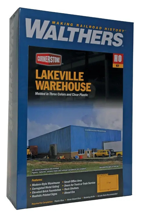 The Walthers Cornerstone Lakeville Modern-Style Warehouse brings a general-use warehouse to your 1960s and later industrial parks. Based on a structure with a concrete-block foundation and corrugated metal superstructure, buildings like this can be found across the continent. This kit is a welcome addition to any industrial park. Use it as a destination for boxcars and trucks as well as for light manufacturing. This kit includes multiple truck doors, a railcar door for cars to be unloaded inside and a wall section with windows to simulate a small office. As shown, Lakeville Modern-Style Warehouse measures: 12 x 19 x 4" / 30.5 x 48.3 x 10.2cm Fits layouts from the 1960s to the present Block foundation with metal upper structure Can be built in multiple configurations Includes alternate doors and windows Correct height truck and railcar loading docks with weather bellows-seals Customize in minutes with molded cut lines, expand with additional kits or build bigger with add-on accessories available separately Great trackside customer by itself or serving a larger industry Separate doors and windows Molded in multiple colors and clear plastic Requires assembly, can be painted but not necessarily required (shown with optional painting and weathering); paints, adhesives, etc not included. Trains, track, figures, scenery, etc pictured not included. |